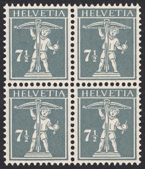 Schweiz, Freimarken, Tellknabe, Nr.138lll, im Viererblock