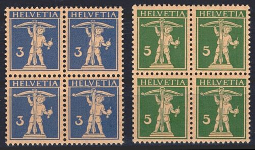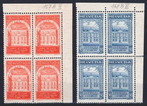 Schweiz, Freimarken, UPU, Nr.167AII/168BII, im Viererblock