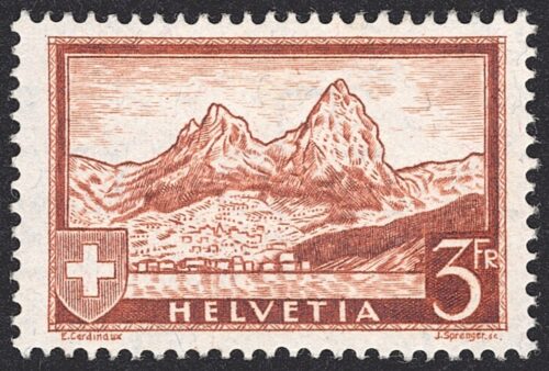 Schweiz, Freimarken, Gebirgslandschaften, Nr.177, 3Fr. braun