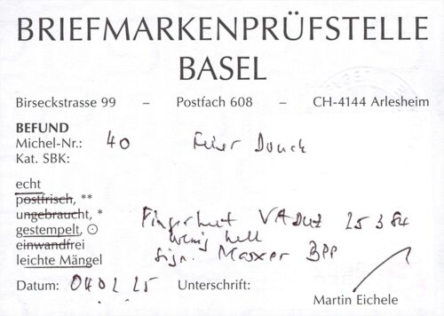 Liechtenstein Vorläufer 1867 Mi. Nr. 40 gestempelt Vollstempel Fingerhut VADUZ
