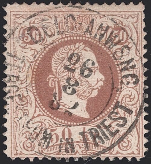 Österreich 1874 50 Kreuzer ANK Nr. 41 II E (LZ 13) „braun“ gestempelt TERGESTEUM IN TRIEST