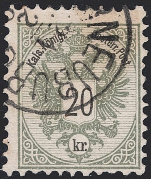 Österreich 1883 20 Kreuzer ANK Nr. 48 E – LZ 10.5 – „grau“ gestempelt KLOSTERNEUBURG