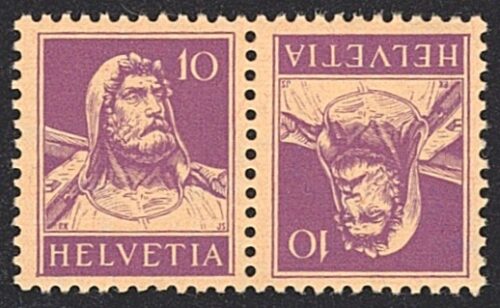 Schweiz, Kehrdrucke, Nr.K27z, 10Rp.violett, geriffeltes Papier