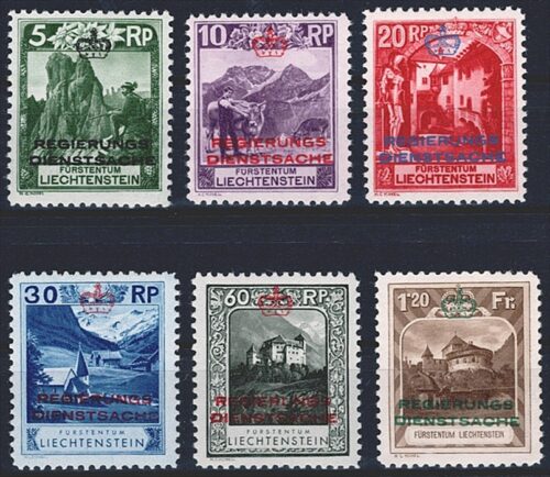 Liechtenstein, Dienstmarken, Nr.1A-8A, komplette Serie, 6 Werte, Zä 10 1/2