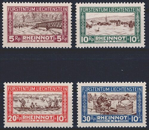 Liechtenstein, Zuschlagsausgaben, Nr.7-10, Rheinnot, komplette Serie