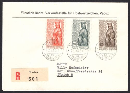 Liechtenstein , FDC, 1954, Marianisches Jahr, Nr.273-275, R-FDC