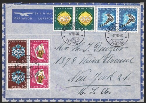Schweiz, Blocks, Nr.25-28 je im Paar auf Bedarfsflugbrief nach USA, Stempel HENGGART
