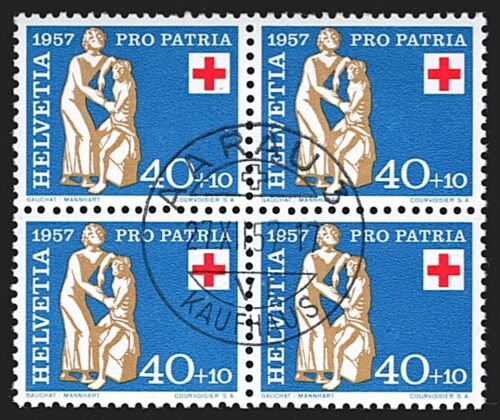 Schweiz, Pro Patria, Viererblöcke, Nr.85, Rotkreuz, gestempelt AARAU