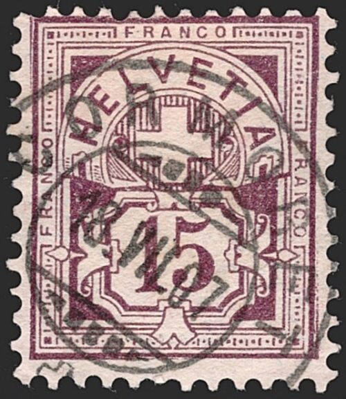 Schweiz, Wertziffer, 1882, 15Rp.braunlila, Nr.85, gestempelt CORMORET