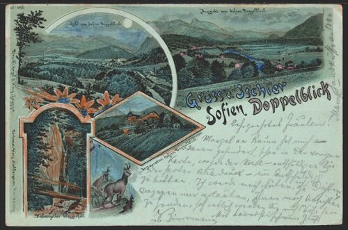 Lithographien, Oberösterreich, Gruss v. ISCHLER Sofien Doppelblick, 2 Bilder, 1898