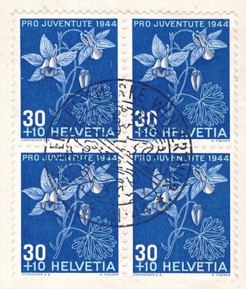 Schweiz, Pro Juventute, Nr.1, Helvetia, im Viererblock