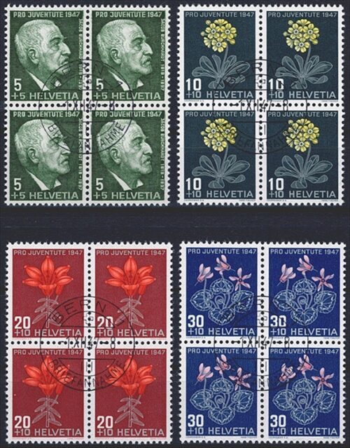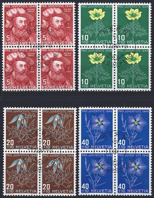 Schweiz, Pro Juventute, Nr.158-162, im Viererblock, offiz. ET-Stempel