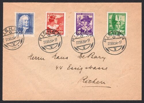Schweiz, Pro Juventute, Nr.69-72, Satzbrief, RIEHEN