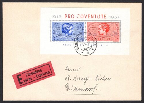 Schweiz, Pro Juventute, Nr.83l/84l, portogerechter Expressbrief, WANGEN BEI DÜBENDORF