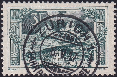 Schweiz, Freimarken, Gebirgslandschaften, Nr.129, 3Fr.blaugrün, sauber gestempelt ZÜRICH
