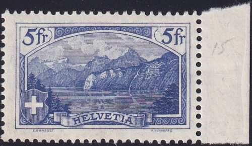 Schweiz, Freimarken, Gebirgslandschaften, Nr.130, 5Fr.ultramarin, mit rechtem Bogenrand