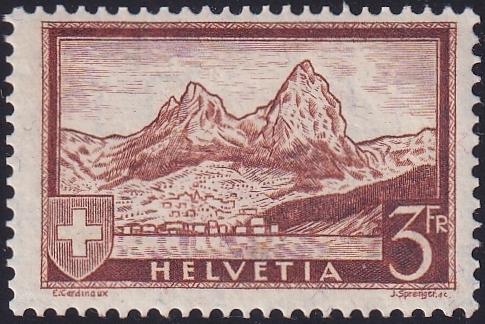 Schweiz, Freimarken, Gebirgslandschaften, Nr.177, 3Fr. braun