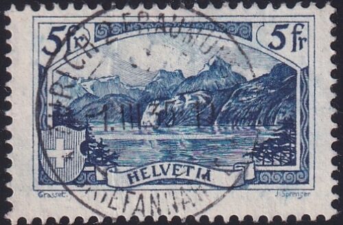 Schweiz, Freimarken, Gebirgslandschaften, Nr.178, 5Fr.blau, sauber gestempelt ZÜRICH