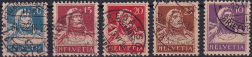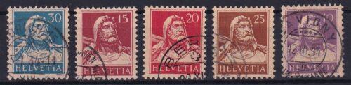 Schweiz, Freimarken, Tellbrustbild, Nr.160z-184z, komplette Serie, 5 Werte, sauber gestempelt