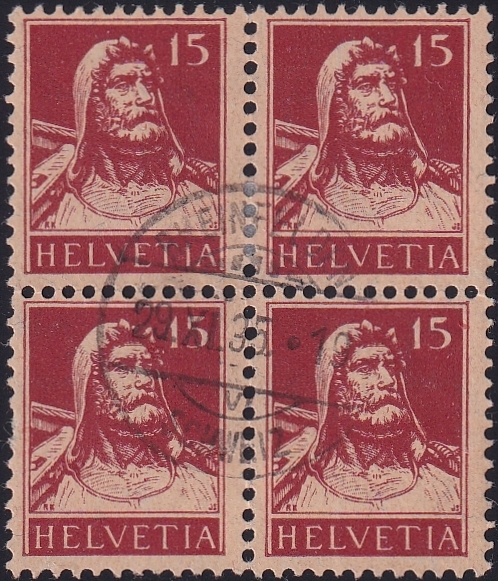Schweiz, Freimarken, Tellbrustbild,Nr.128, 15Rp.rotviolett, im Viererblock