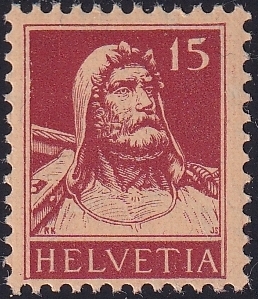 Schweiz, Freimarken, Tellbrustbild,Nr.128, 15Rp.rotviolett