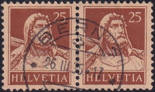 Schweiz, Freimarken, Tellknabe, Nr.183z, geriffeltes Papier, 5Rp.olivgrün, waagrechtes Paar, zentrisch gestempelt INTERLAKEN