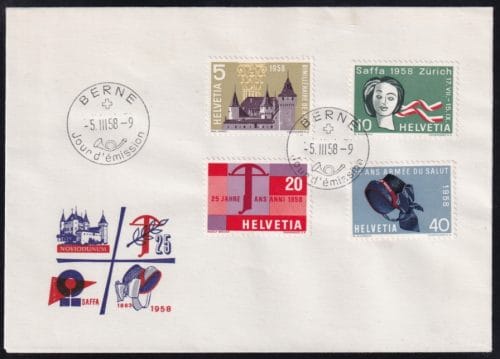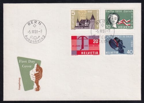 Schweiz Freimarken, illustrierter unadressierter FDC, 1958