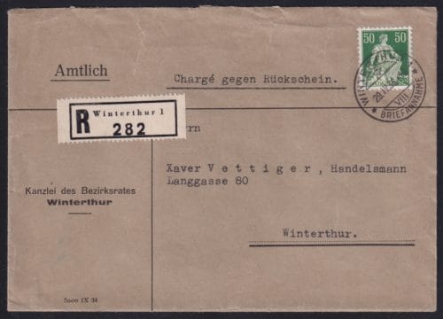 Schweiz Helvetia mit Schwert, R-Brief mit Rückschein