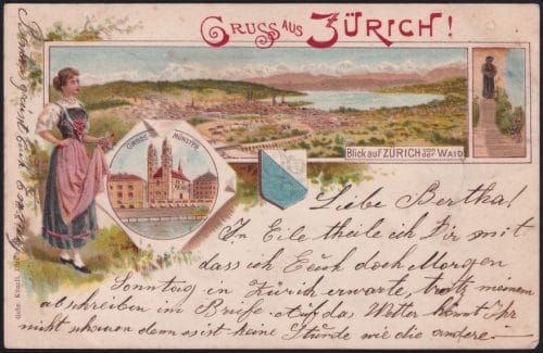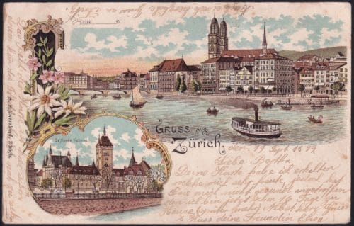 Schweiz Lithographie 1899 „Gruss aus Zürich“