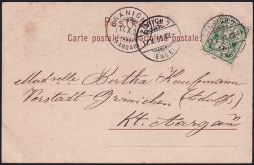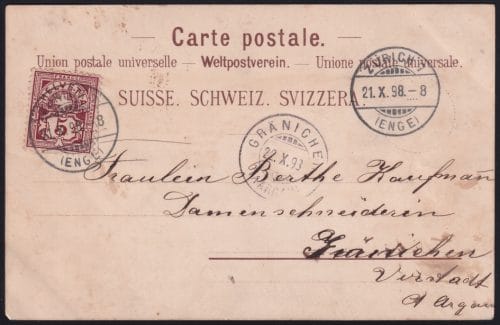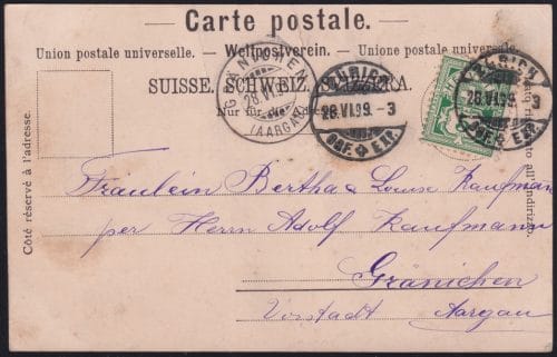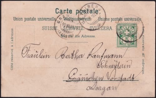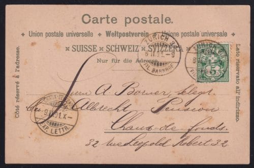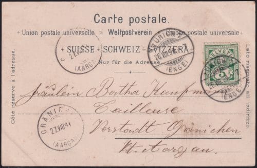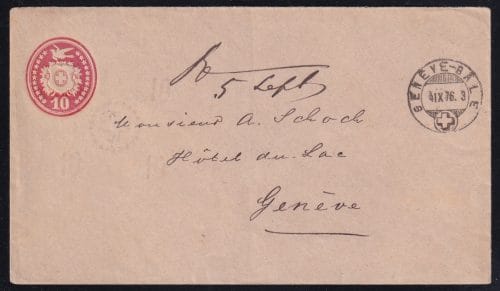 Schweiz Tübelibrief U 24, mit Bahnpoststempel GENEVE-BALE