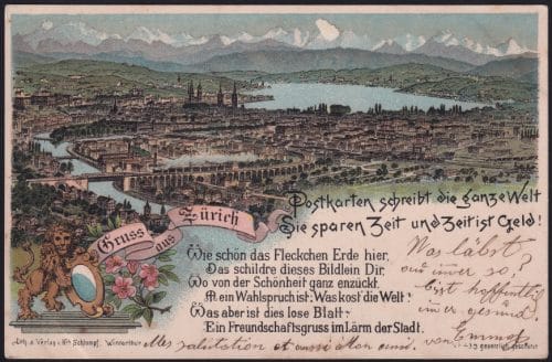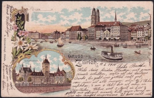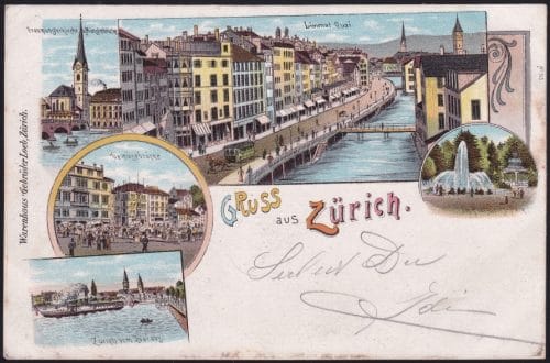 Schweiz Lithographie 1902 „Gruss aus Zürich“