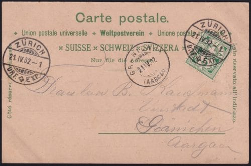 Schweiz Postkarte, Antwortteil, ab Liverpool, Nr.25A
