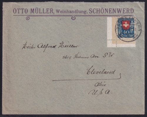 Schweiz Pro Juventute, Nr. 20, auf Brief nach den USA