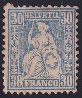 Schweiz Sitzende Helvetia Nr. 41, ohne Gummi, leicht bräunlich