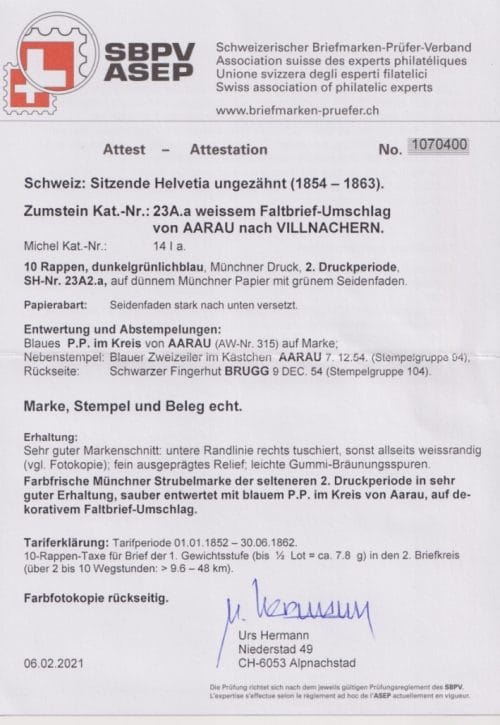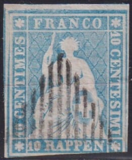 Schweiz Strubel, Nr.23Aa, meist vollrandig mit blauem PP