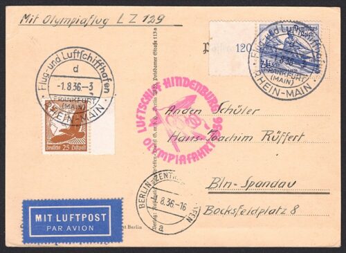 Deutschland, Zeppelin, Olympia-Fahrt 1936, Aufgabe Rhein-Main, teilweise mit Olympia-Marken frankiert