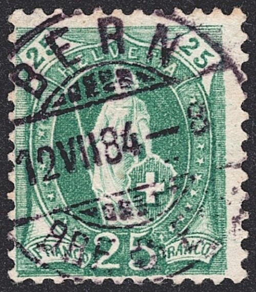 Schweiz, Altschweiz, Stehende Helvetia, Nr.67A, 25Rp.grün, Vollstempel BERN
