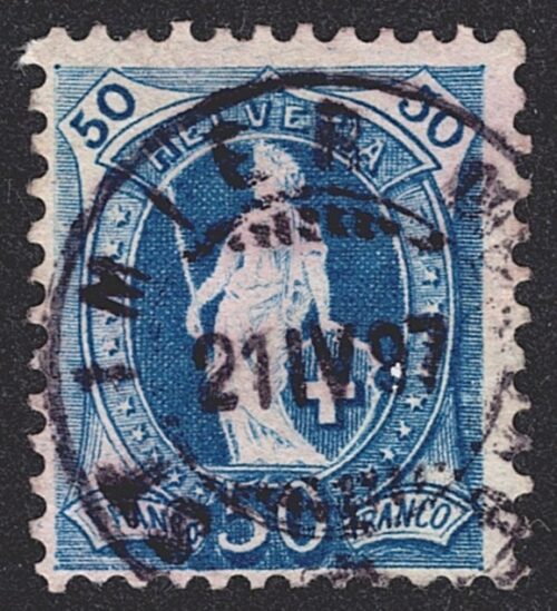 Schweiz, Altschweiz, Stehende Helvetia, Nr.70C, 50Rp.blau, Vollstempel VEVEY