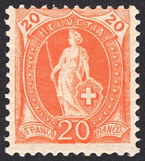 Schweiz, Altschweiz, Stehende Helvetia, Nr.86C, 20Rp.rötlichorange