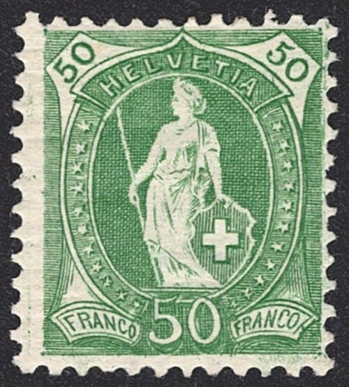 Schweiz, Altschweiz, Stehende Helvetia, Nr.90C, 50Rp.grün