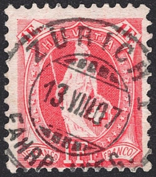 Schweiz, Stehende Helvetia, Nr.99A, 1Fr.rosakarmin, sauber gestempelt LANGGASSE