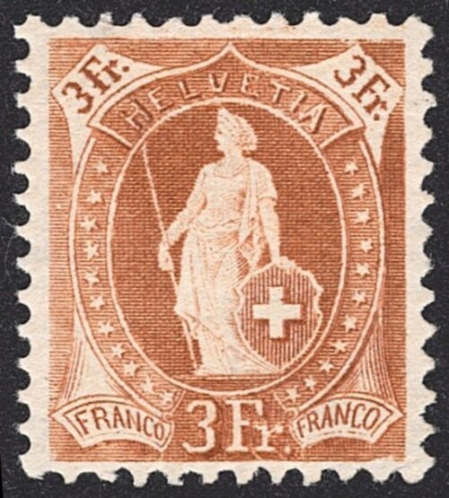 Schweiz, Stehende Helvetia, Nr.100B, 3Fr.hellbraun, sauber gestempelt RORSCHACH