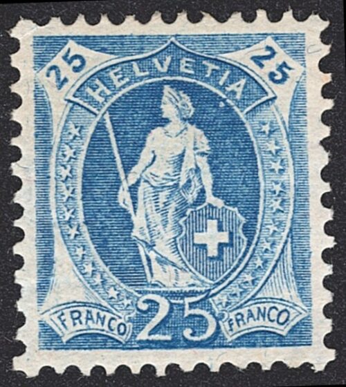 Schweiz, Altschweiz, Stehende Helvetia, Nr.95A, 25Rp.blau