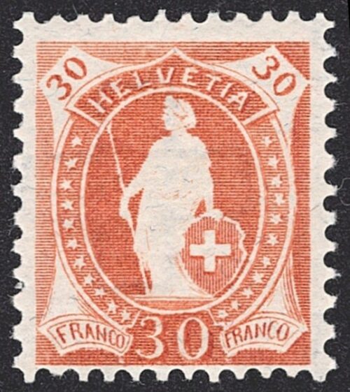 Schweiz, Altschweiz, Stehende Helvetia, Nr.96B, 30Rp.orangebraun