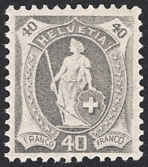 Schweiz, Altschweiz, Stehende Helvetia, Nr.97A, 40Rp.grau