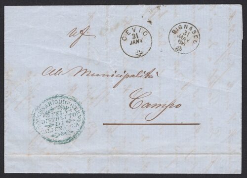 Schweiz, Abstempelungen, Postgeschichte, Faltbrief, CEVIO/BIGNASCO, Fingerhut Gr.104, rückseitig Strahlenstempel CAMPO V.M