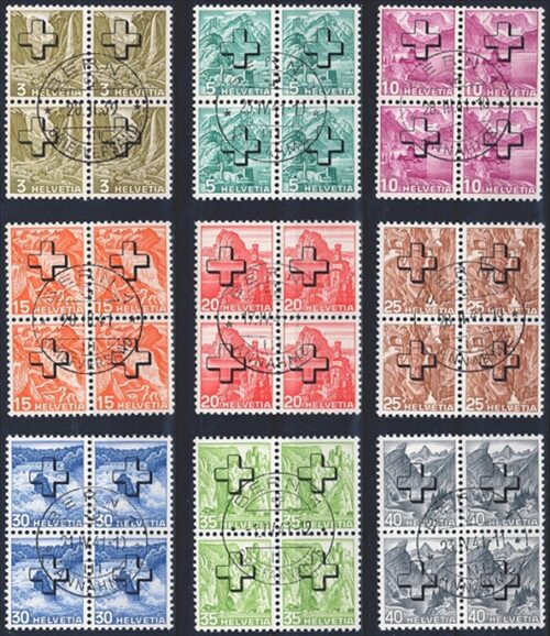 Schweiz, Dienst, Verwaltungsmarken, Nr.65-75, komplette Serie, im Viererblock, ET gestempelt11 Werte
