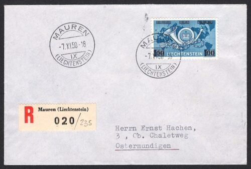 Liechtenstein , FDC, 1950, Aushilfsausgabe, Nr.235, R-FDC