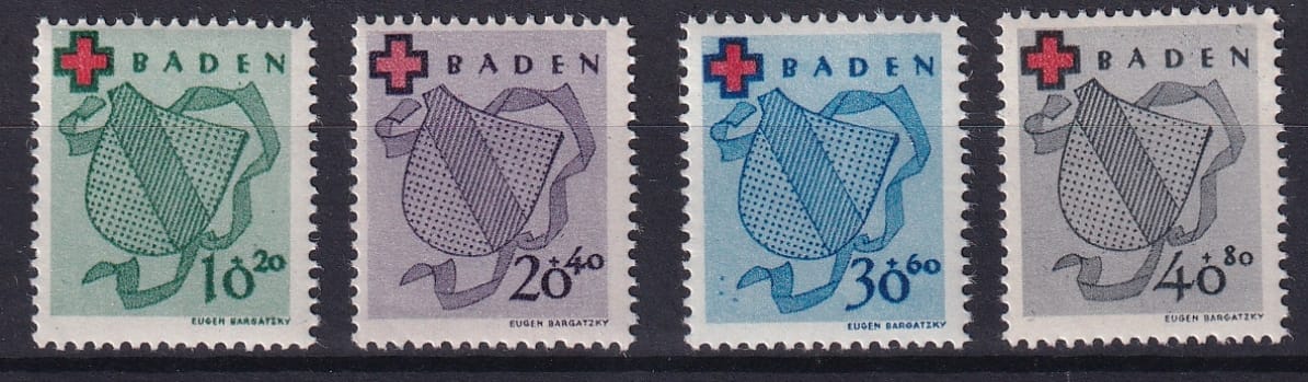 Deutschland 1949 Franz. Zone Baden, Rotes Kreuz, komplette Serie