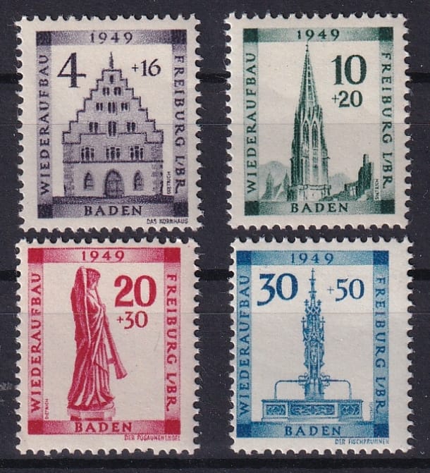 Deutschland 1949 Franz. Zone Baden Wiederaufbau der Stadt Freiburg, komplette Serie